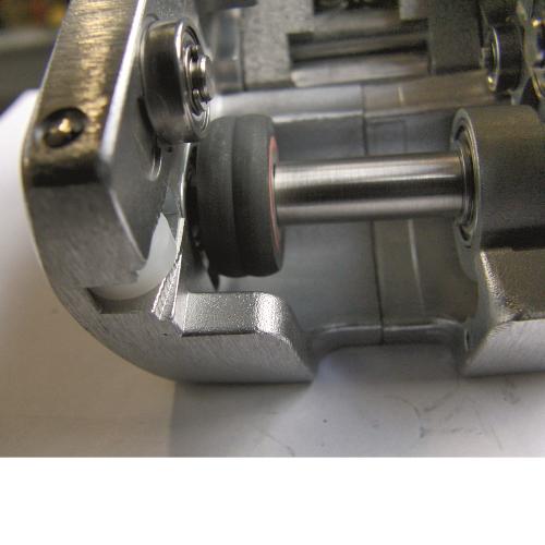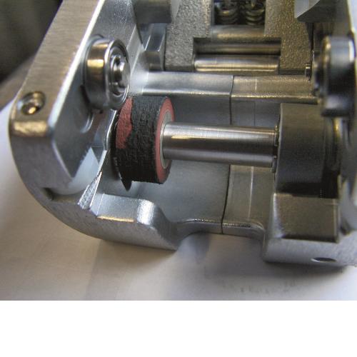 Das Reibrad der geschwindigkeitsabhängigen Fangfunktion ist mit zwei redundanten Laufflächen versehen (siehe Detail ). Weiterhin ist eine Verschleißmarkierung eingearbeitet, die durch eine zweite