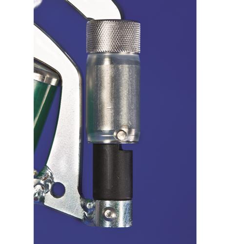 Der Karabinerhaken des Fallschutzläufers ist mit einem HACA TRI SAFE Verschluss (siehe Detail ) gesichert. Dieser Öffnungsmechanismus ist selbständig schließend und muss zur Sicherheit des
