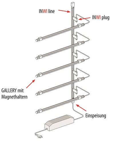 75 W, 24 VDC, MM-Zeichen (geeignet für Möbeleinbau), Anschlussfertig 1800 mm Netzanschlusskabel, NV-Ausgang 100 mm mit LD Steckverbinder. Alle Produkte werden anschlussfertig ausgeliefert! INWI®, eine unsichtbare Stromversorgung für die perfekte Aktzentbeleuchtung im Regal. Die werkzeuglose Montage der INWI® Niedervolt-Stromschiene, erfolgt durch das einschieben in die Regalsäule. Eine enorme Arbeitszeitersparnis, da das aufwendige Kabelverlegen entfällt. Ein kleiner Adapter verbindet die LED-Beleuchtung des Fachbodens durch die Säulenlochung hindurch mit der Stromschiene. Durch das Plug-and-Go System können die Regalböden jederzeit umpositioniert werden.