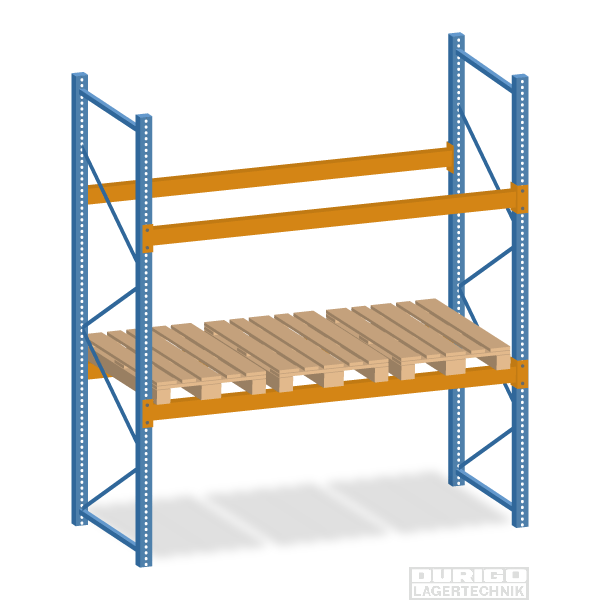 Palettenhöhe von 1500 mm) von bis zu 10.150 kg aufnehmen. Die aufrechten Ständer sind in saphirblau hochwertig beschichtet (RAL 5003), die Diagonalen/Horizontalen sind verzinkt. Der
