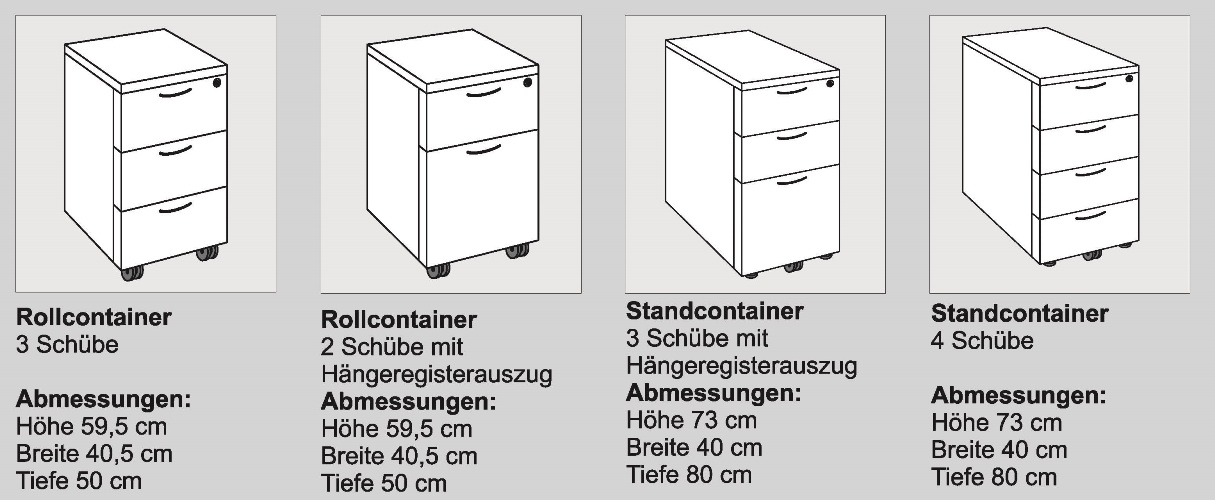 Stand- und Rollcontainer ahorn/grau