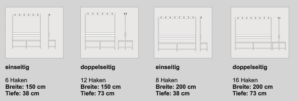 • komplette Einheiten mit Aluminium- Kleiderhaken