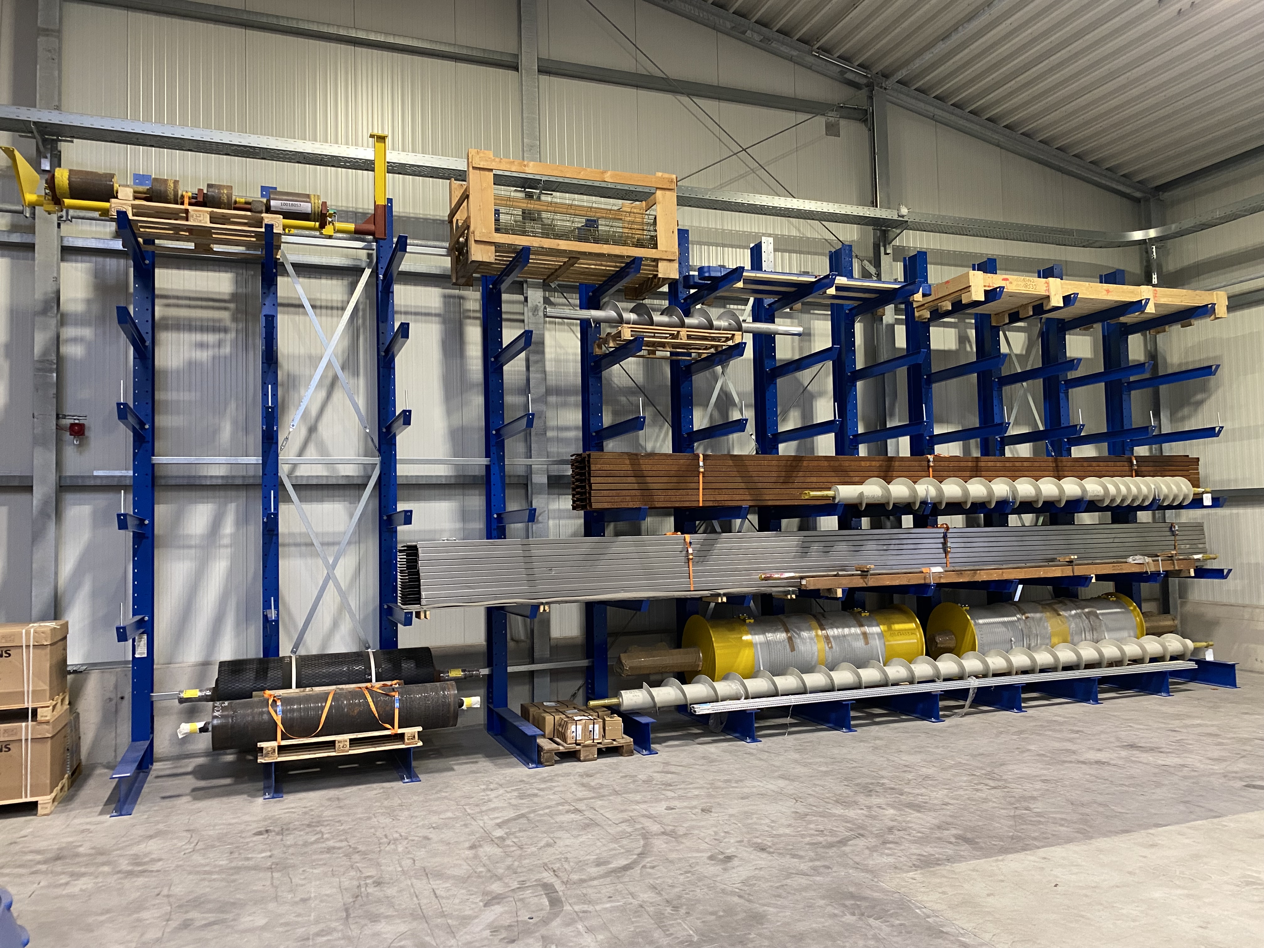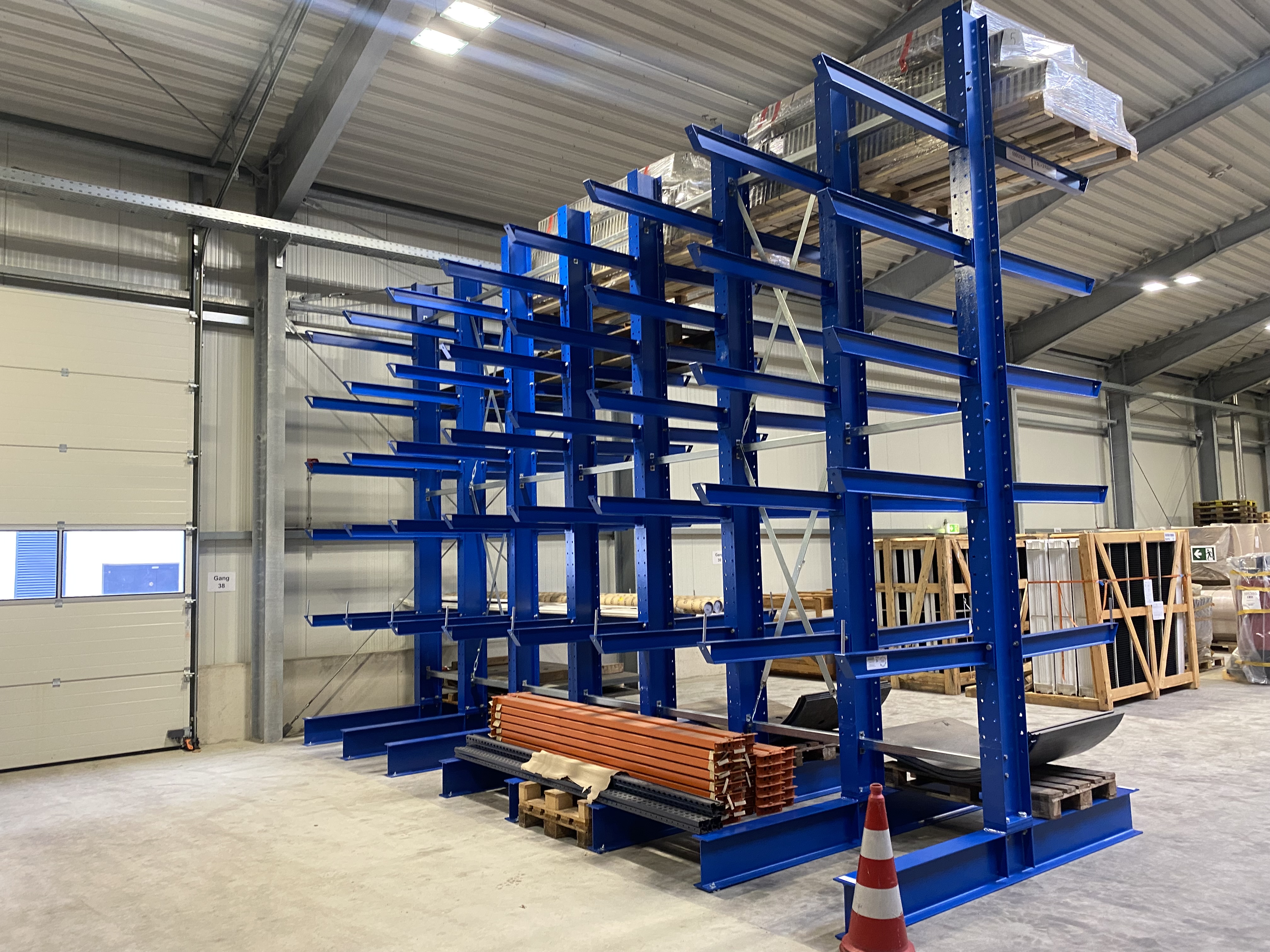 Für diesen Kunden wurde eine umfangreiche Kragarmregalanlage installiert, die ideal für die Lagerung von Langgut, Rohren, Profilen und schweren Maschinenteilen geeignet ist. Durch die offene Bauweise und die belastbaren Kragarme können sperrige Materialien effizient und übersichtlich gelagert werden. Die Lösung bietet hohe Traglasten, flexible Ebenen und eine optimale Raumausnutzung – perfekt abgestimmt auf die Materialvielfalt und die täglichen Anforderungen im Betrieb.