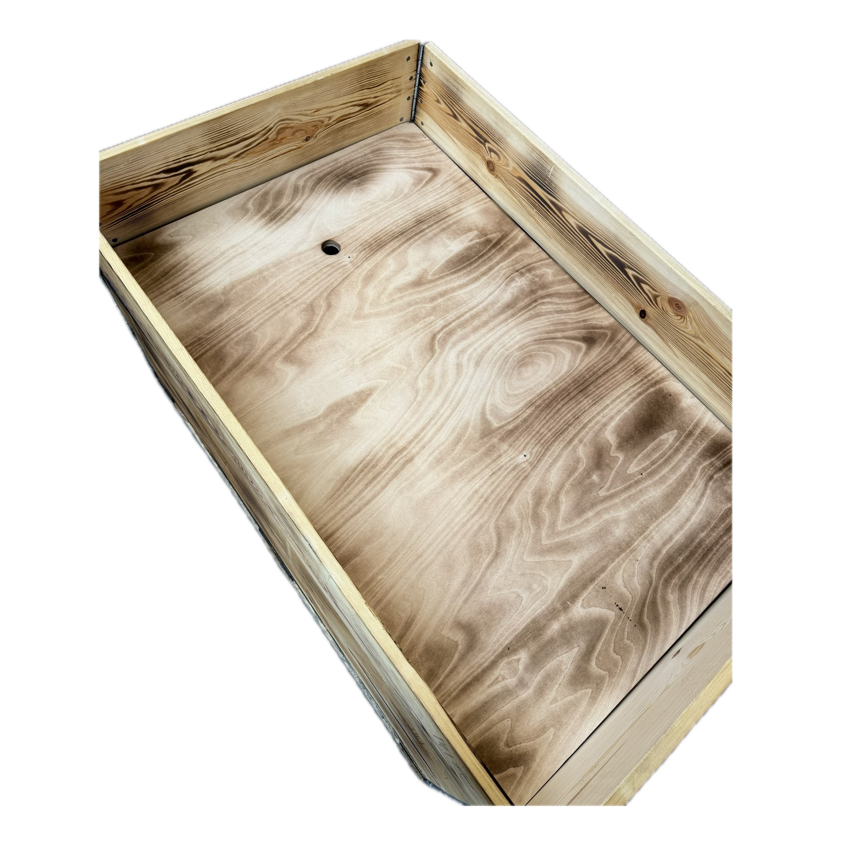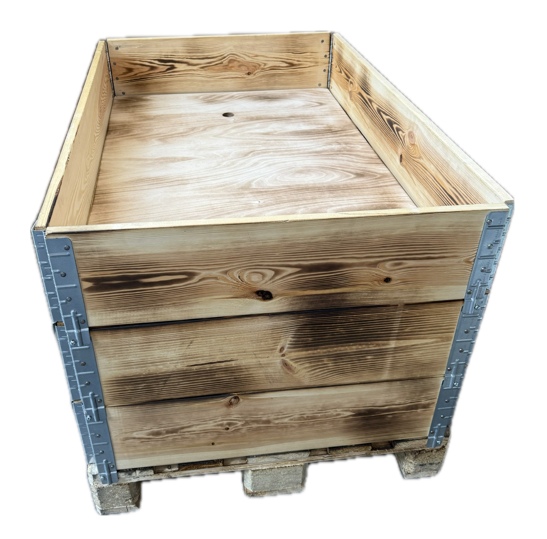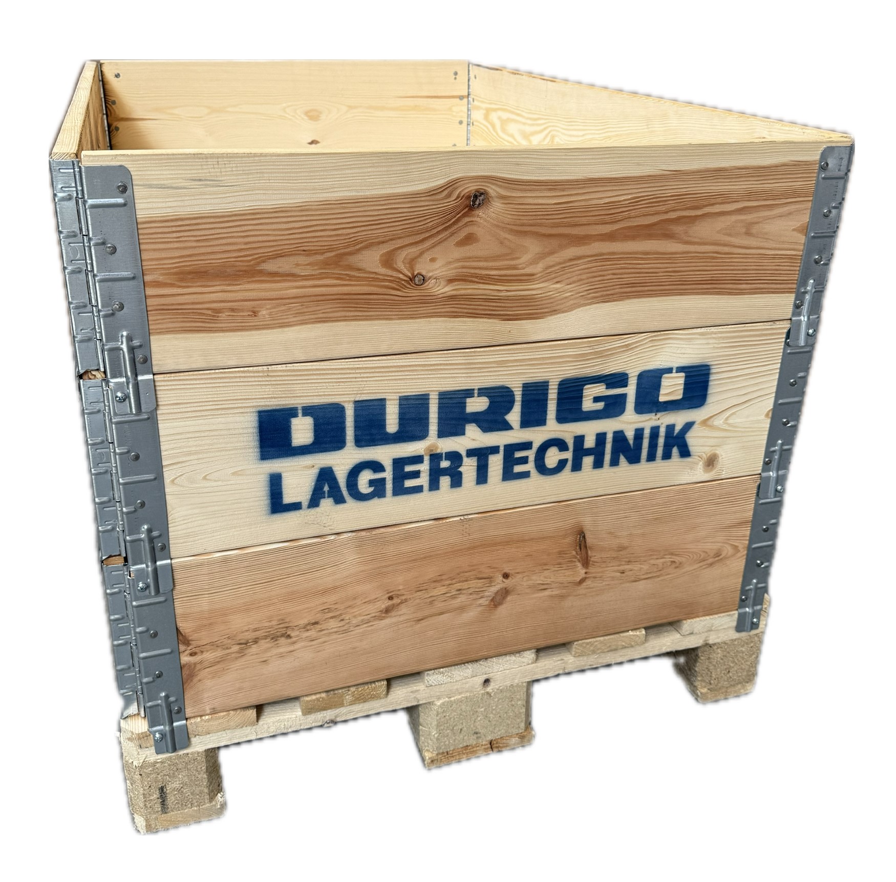 Robuster Warenpräsenter mit einem Holzaufsatzrahmen - komplett verschraubt
